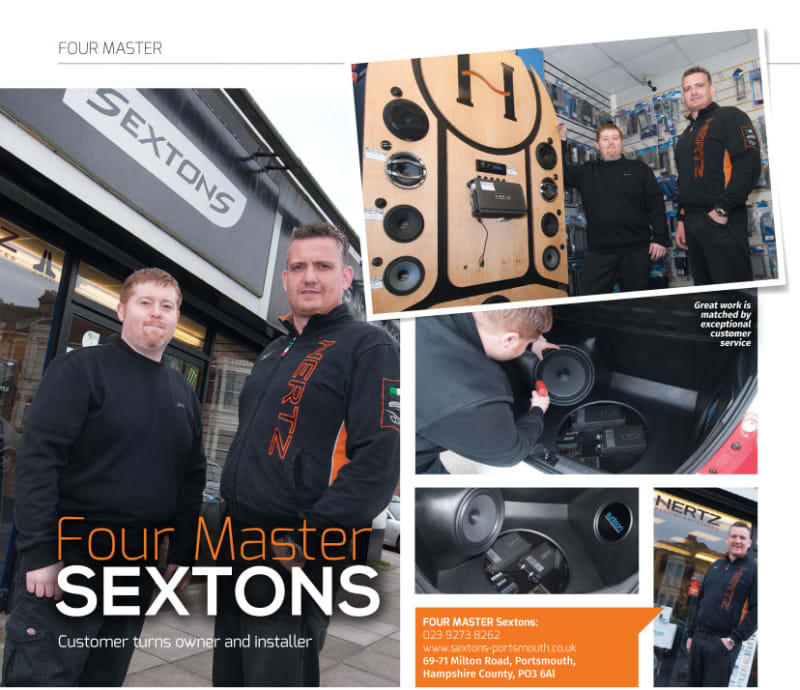 Joe is what we used to call a “go-getter”. He grew up with a natural interest in cars and in particular, car audio. This consumed much of his time and money throughout his youth. He became a regular customer of Road Sound in Portsmouth, which later became Toad and finally Sextons. Meanwhile, he set up and ran a small IT brokering company that did well enough for him to be able to purchase Sextons Portsmouth when it came up for sale. He ran the two businesses in parallel until the recession hit. At this point both businesses took a downward turn. Joe tells us; “It was time to make a decision. I couldn't focus on two completely different areas at the same time and decided to go with my hobby-inspired business, Sextons. As with many other businesses, we tried to diversify and were sucked into high volume low margin products only to find that the high volume wasn’t there anymore. I needed to come up with a new strategy. We had a reputation as a car audio reseller and installer and to our regular customer base identified us as just that. We looked carefully at the products we stocked and observed some important holes in our offering. FOUR had been to see us a number of times but we had no hands-on experience with their brands, Hertz and Audison, but finally took the plunge and took in a small amount of product.