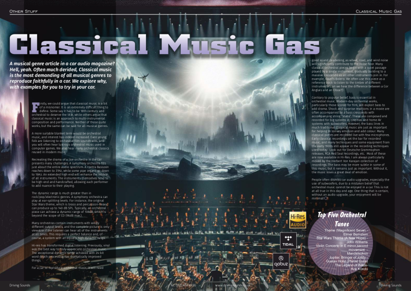 A musical genre article in a car audio magazine? Hell, yeah. Often much derided, Classical music is the most demanding of all musical genres to reproduce faithfully in a car. We explore why, with examples for you to try in your car.