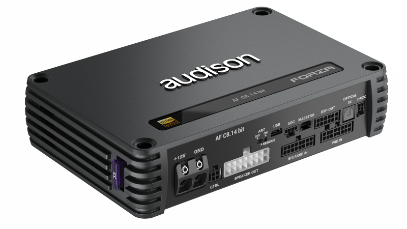 It is now desirable for an audio system to be completely hidden away from view. An 8-channel Audison amplifier with DSP on board measures just 240 x 47 x 156 mm. The electrical efficiency of Class D amplification means it can be mounted in small areas behind panels with no need for forced-air cooling.